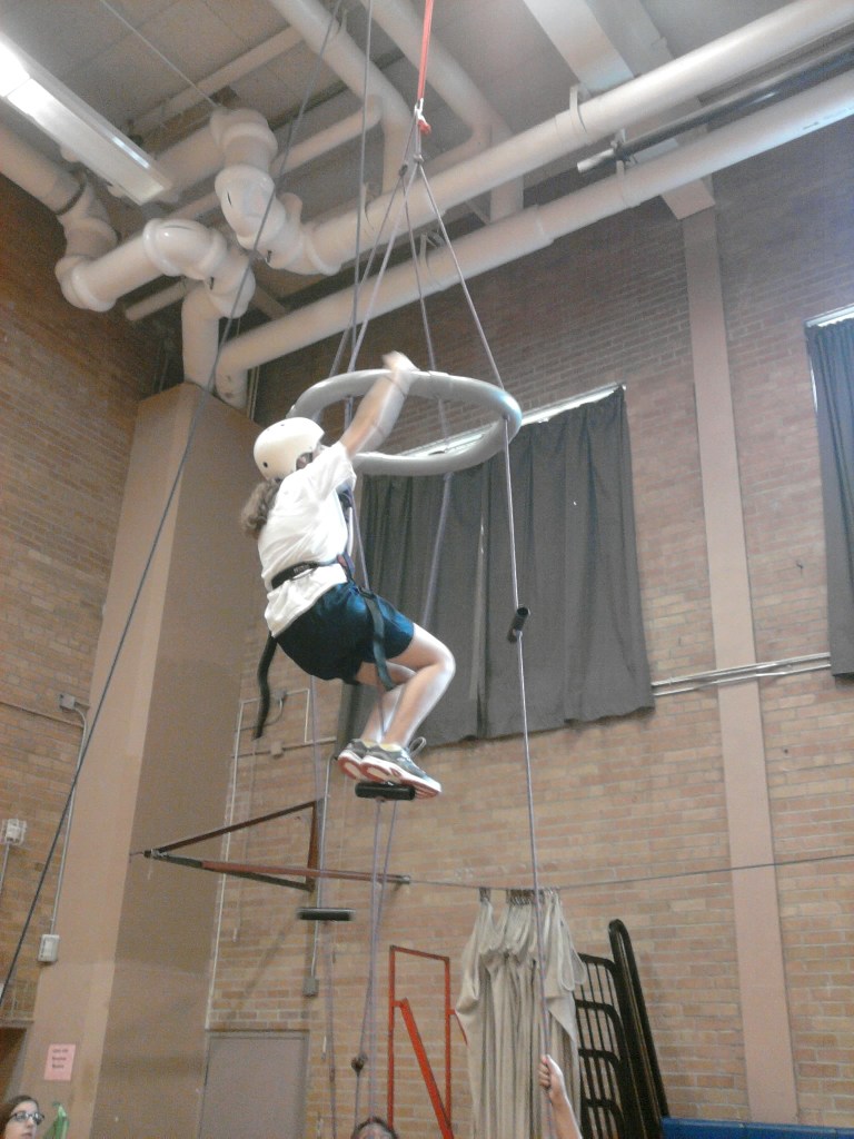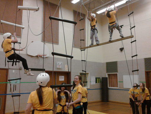 An Aerial Obstacle Adventure set-up in your gym โ Participants CLIMB, SWING, & FLY as they take on the challenges and try out the thrills!